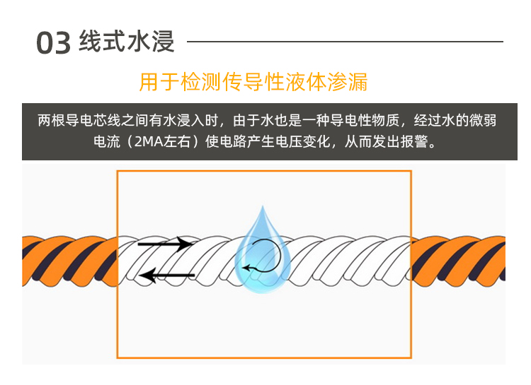 測量原理:根據電極或非定位感應線浸水阻值變化原理,由專用集成芯片進行信號放大、整形、比較、輸出高低電平或繼電器報警信號 測量介質:液體,電導率>5us/cm 點式測量范圍:浸水1mm 線式測量范圍:0.5~50米感應線,非定位 輸出信號:晶體管或繼電器干接點輸出 繼電器觸點容量:觸點容量(阻性):1A/AC220V、DC24V 誤報率:<100PPM 信號隔離:電源、輸入、輸出三重隔離 隔離強度:1500V 安裝方式:分體式 |