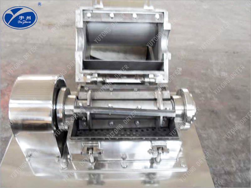 The material is sent from the feeding hopper to the crushing chamber, where it is subjected to the impact of the blade and blade holder. The rotating blade and fixed blade simultaneously shear and crush the material. Due to the centrifugal force of rotation, the material automatically flows out from the outlet.