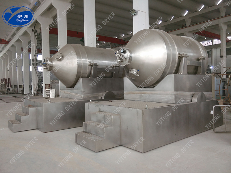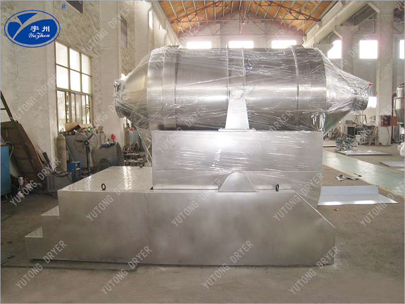 The rotary drum of the EYH two-dimensional mixer can perform two movements simultaneously, one is the rotation of the rotary drum, and the other is the swing of the rotary drum with the swing frame. The mixed material rotates, flips, and mixes inside the drum, while also undergoing left and right back and forth mixing movements with the swinging of the drum. Under the combined action of these two movements, the material is fully mixed in a short period of time. The EYH two-dimensional mixer is suitable for mixing all powder and granular materials.