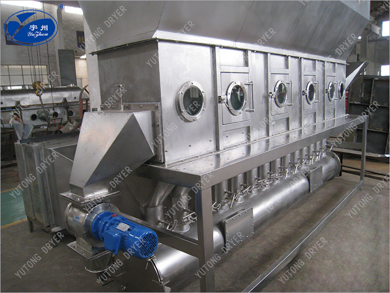 Clean hot air is distributed into the bed through the valve plate, and the wet material entering from the feeder is boiled by the hot air. Due to the extensive contact between hot air and materials, the process of heat and mass transfer is enhanced, so it can be dried in a relatively short time. If using a continuous type, the material enters from one end of the bed, undergoes boiling and drying for several seconds to minutes, and automatically flows out from the other end of the bed. This device generally operates under negative pressure.