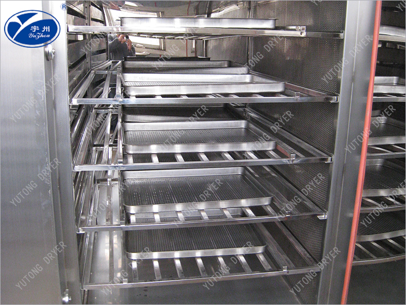 Place the drying tray, bottle, or cart filled with materials into the box, start the PLC programmable control system, and the internal circulation fan will work, heat up, and the butterfly valve will open simultaneously. The drying box will quickly heat up. Under the action of the internal circulation fan, dry and hot air enters the box through a high-temperature resistant filter, and forms a uniform distribution of air under the action of the fine adjustment plate to be transmitted into the box. The dry air absorbs the moisture on the surface of the bottle (material, item), enters the heating channel for evaporation and discharge, and the dry air flows directionally under the action of the fan, while the water vapor is discharged. As the water vapor gradually decreases and fresh filtered air is intermittently replenished, the box is in a slightly positive pressure state, the constant temperature ends, and the process control is completed. Turn on the air supply or (inlet) forced cooling, the automatic butterfly valve enters the closed state, and the sound and light prompt opens the door to release the bottle.