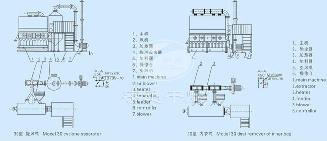 注:干燥能力以初含水份20%、終含水份5%、進風溫度130℃而定,其他物料干燥能力將根據不同情況而定;