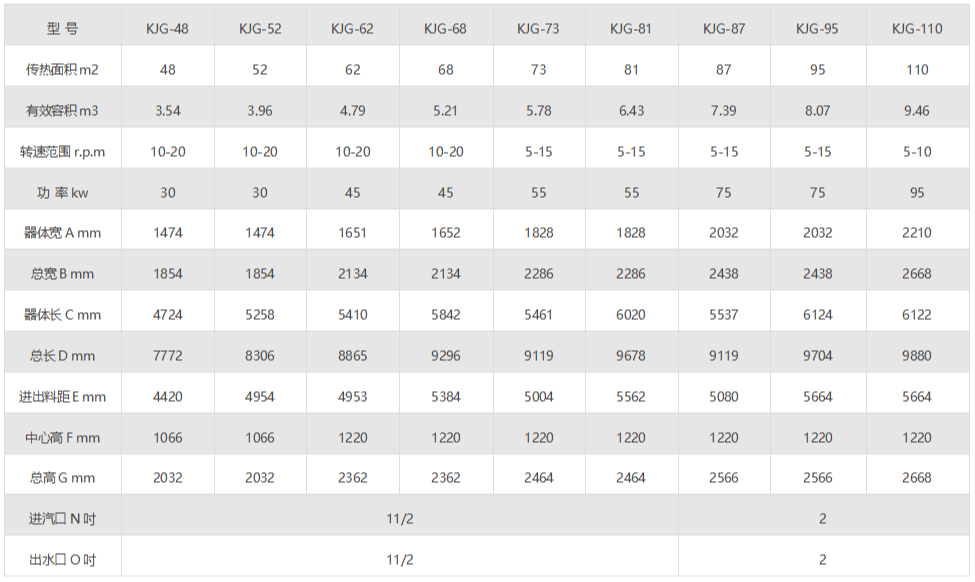2、熱能利用率高,能耗低,裝料量可達筒體體積的70~80%,由于間接加熱,沒有大量攜帶空氣帶走熱量,干燥器外壁又設置保溫層,蒸發1kg水僅需1.2kg水蒸氣。