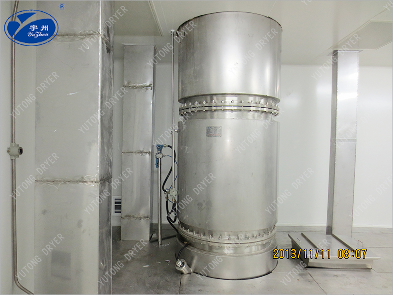 После фильтрации фильтром воздуха средней школы окружающий воздух подается воздуходувкой в паровой радиатор и нагревается до установленной технологической температуры. Затем он входит в сушильный концентратор флэш - пара, который вместе с сухим фильтром, отправленным из винтового питателя в сушильный хост, завершает процесс сушки теплоносителя в сухом хосте. Газоустойчивая смесь отделяется и фильтруется циклонным сепаратором и мешковым пылеуловителем, материал отделяется от газа в сухой системе и выбрасывается в атмосферу вентилятором.