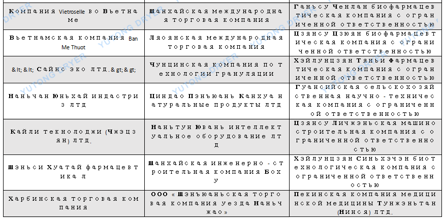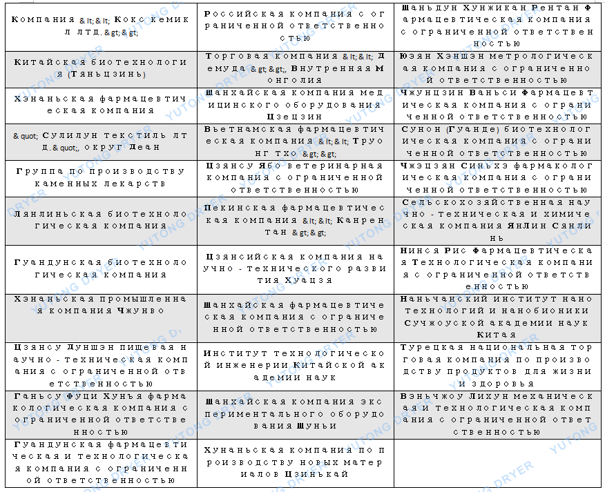 Список пользователей сушилки для распыления экстрактов ZPG