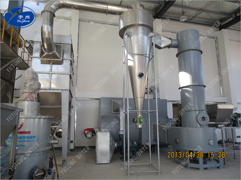 7、 Сухая камера имеет высокую периферическую газовую скорость и короткое время пребывания материала, эффективно предотвращает вязкую стенку материала и термочувствительный материал для порчи, для достижения высокой эффективности, быстроты, небольшого оборудования, большой производительности.