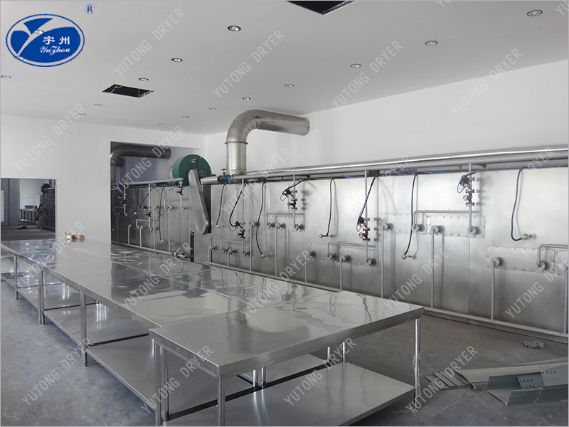 Он особенно подходит для обезвоженных овощей, таблеток китайской медицины и других материалов с высоким содержанием воды и теплочувствительности. Он имеет преимущества быстрой сушки, высокой интенсивности испарения и хорошего качества продукта. Ленточные сушилки широко используются в промышленности, в основном для сушки небольших кусков материала и волокнистых материалов. Короче говоря, материал, высушенный с помощью ленточной сушилки, должен иметь определенную форму и сохранять определенную форму после сушки.