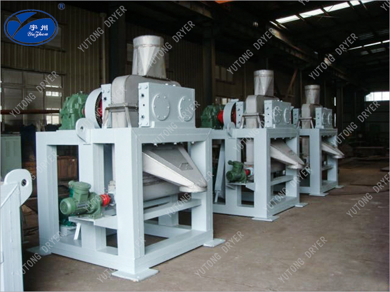 используются для технологии сухого экструзии, которая сжимает порошковые материалы с содержанием воды менее 5% в комки. После дробления, грануляции и процесса отбора концентрированный материал превращается в гранулированный материал, отвечающий требованиям использования. Сухие роликовые грануляции в основном полагаются на внешнее давление, чтобы заставить материал сжать его в шар через промежуток между двумя обратными вращающимися валками. Во время прокатки кажущаяся плотность материала может быть увеличена в 1,5 - 3 раза, что соответствует определенным требованиям к прочности.